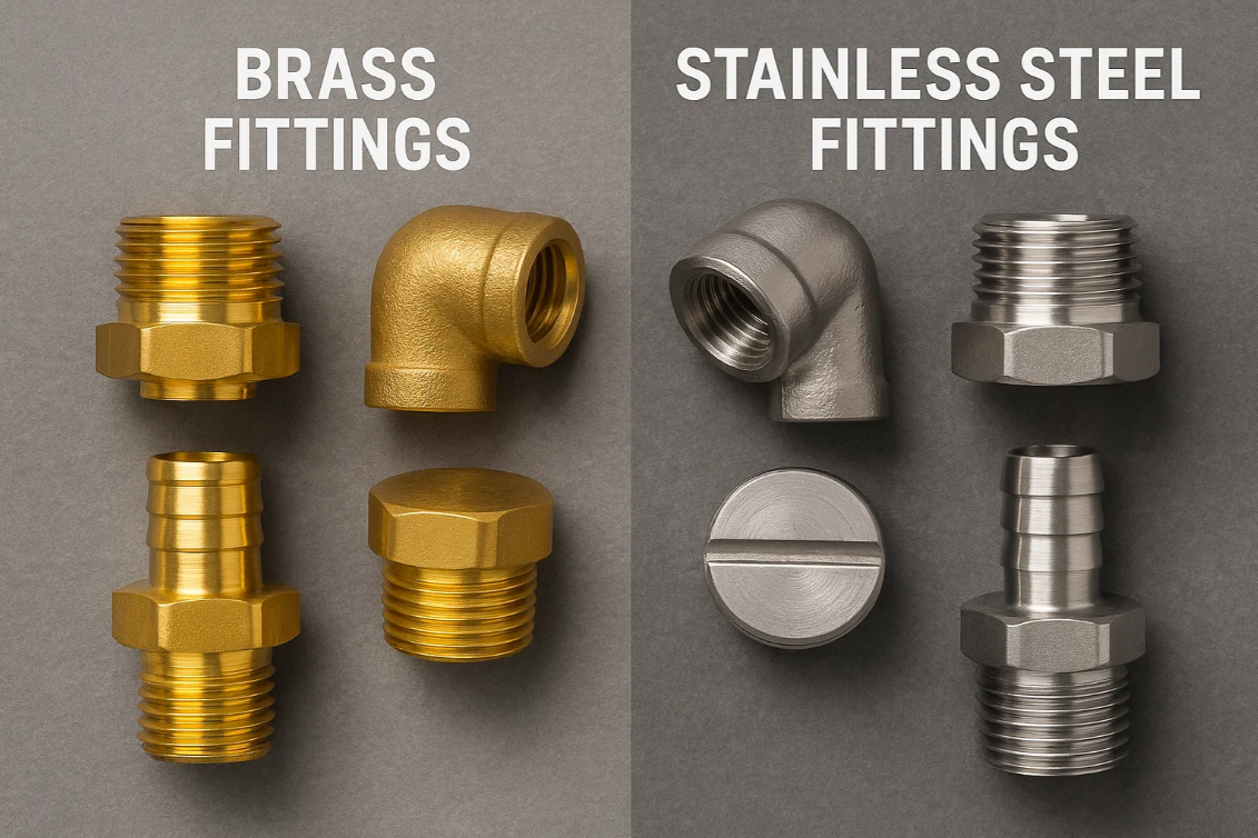 Raccordi in ottone : Mentre l'ottone è resistente, lo è meno adatto per i sistemi ad alta pressione rispetto all'acciaio inossidabile. L'ottone può gestire pressioni moderate, ma in applicazioni pesanti in cui viene applicata un'estrema pressione, i raccordi in ottone potrebbero non funzionare bene nel tempo.