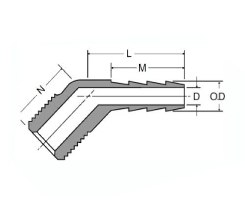 1/8 NPT x 1/4 TUBO BAB BARB MASCHIO 45 ° Elbow maschile 139